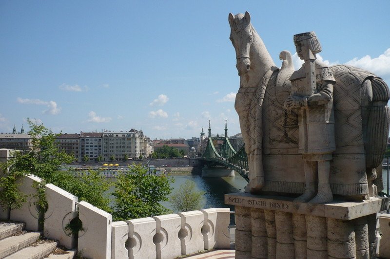 Ha kicsit visszasétálunk, akkor az első kilátóhelyről már meg is csodálhatjuk a Szabadság hidat, István Király társaságában.
