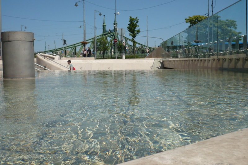 A Gellért tér az első látványosság, már ott meg fogtok állni, mert van egy szuper medence/szökőkút. Szerintem ebben a nyáron egy pár gyerek is landolni fog, mialatt a szüleik a telefonjukat nyomkodják. 🙁