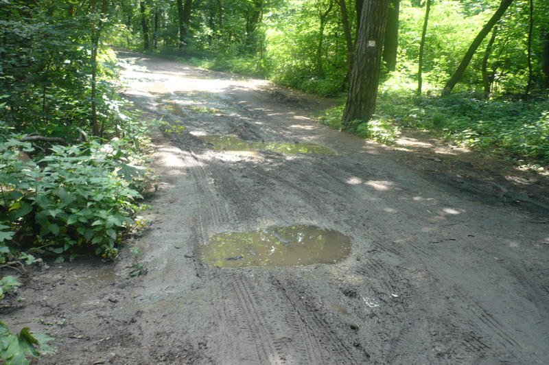 Megtaláltuk azt a helyet, ahol el kell hagyni a piros jelzéseket, és a SÁRGA körre ráfordulni. Hát pocsolyából volt jó sok.