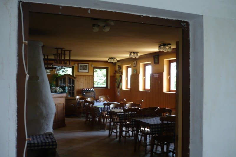 És végül felértünk a Frank- hegyi Turistaházhoz, amit amúgy nem könnyű megtalálni, lévén SEMMI kiírás, tábla, ilyesmi nem jelzi. De az udvart felismertem a fotókról (korábban megnéztem), így már csak a bejáratot kellett megtalálni, az már könnyű volt.