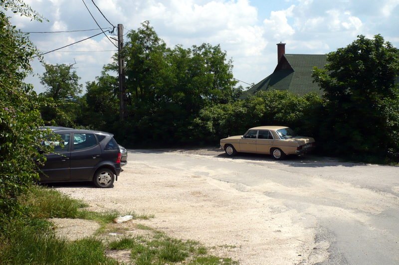 Majdnem befejeztük a kirándulásunkat, mielőtt elkezdtük, rettentő bosszantó volt az egész helyzet. Végül egy kis téren (tényleg kicsi, nem is nevezném térnek, neve sincs) leparkoltunk, otthagytuk az autót és felkaptattunk gyalog a Frank- hegyi Turistaházhoz.