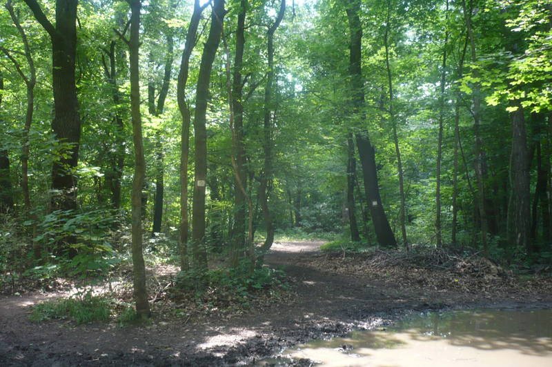 Bizony bizony, itt kell a pocsolyák közöt bemenni, és a sárga kör jelzét követni. Szárazabb időben szerencsére a pocsolyák eltűnnek.